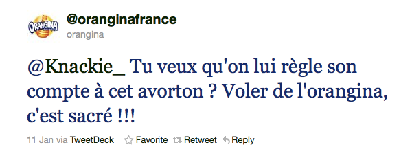 En tant que représentant officiel de la marque sur Twitter, il vous est formellement contre-indiqué de perdre votre sang-froid et donc de vous énerver lors d’une discussion avec un internaute (qu’il s’agisse d’un troll contestant gratuitement une idée ou d’un consommateur ayant un réel intérêt à être agressif, peu importe). De plus, vous pourriez croire que vous lâcher en privé vous préserve d’une mauvaise image à l’échelle publique, mais détrompez-vous : les nouvelles vont bien vite sur les réseaux sociaux !