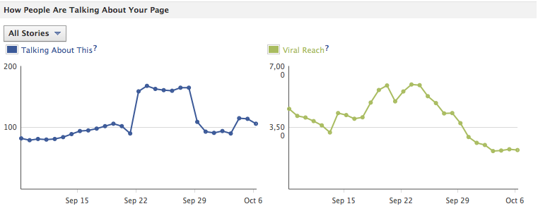 Si vous êtes un visiteur régulier des –désormais anciens– Insights de votre Fan-Page, alors vous n’êtes pas sans savoir que Facebook met particulièrement en avant un ensemble de trois indicateurs : les « Daily New Likes », le « Total Likes » et les « Monthly Active Users ». Dans les nouvelles statistiques, Facebook conserve les deux derniers indicateurs (remplaçant « Monthly Active Users » par « Weekly Total Reach ») et en rajoute deux autres : « Friends of Fans » et « People Talking About This ».