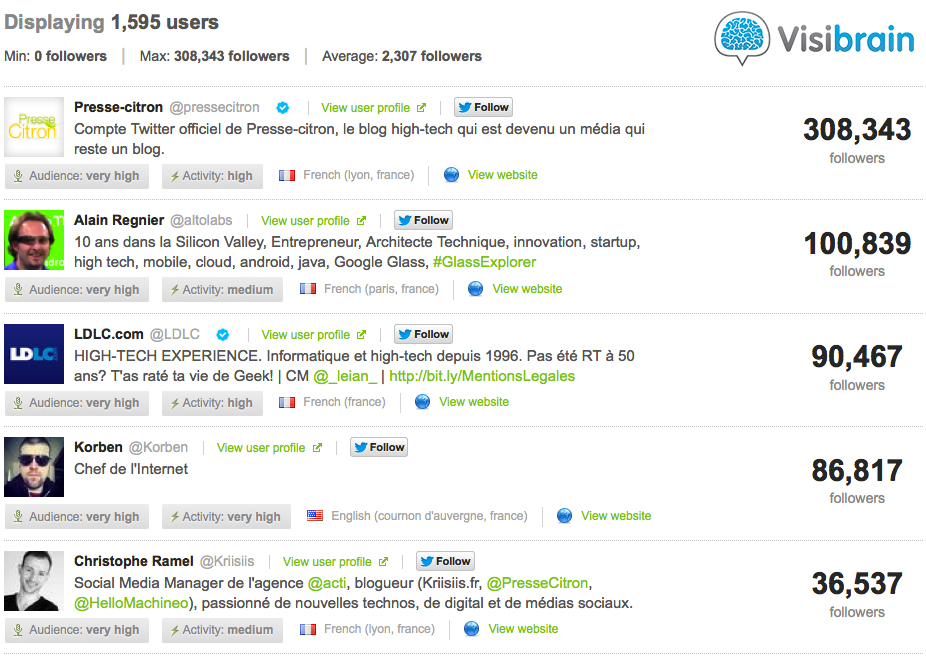À l’origine de l’ensemble de ces tweets, 1.595 internautes dont de nouveau des comptes populaires, comme ceux de @PresseCitron (308.343 abonnés), de @AltoLabs (100.839 abonnés), de @LDLC (90.467 abonnés) ou encore @Korben (86.817 abonnés) :