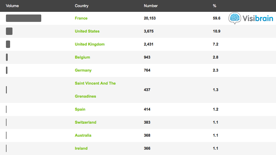 LeWeb confirme sa capacité à attirer des acteurs du monde entier puisque près d’un tweet sur deux n’a pas été publié par un compte francophone : 3.675 tweets proviennent par exemple de comptes américains, 2.431 de comptes britanniques,  943 de comptes belges ou encore 764 de comptes allemands :