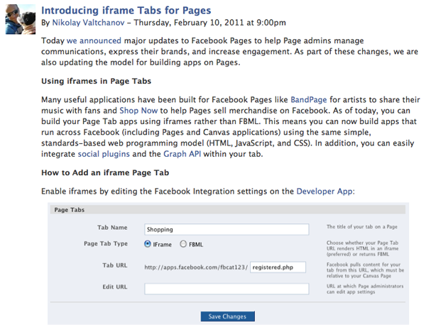 Iframe Apps ? Ne parle-t-on plus d’onglets désormais ? Jusqu’à maintenant, nous parlions de FBML Tabs pour la simple et bonne raison que passant par Static FBML, nous n’accordions de l’importance qu’à des onglets. Aujourd’hui, en attendant une solution similaire pour les Iframes, nous parlons d’application Iframe ; il faut en effet créer sa propre application Facebook pour exploiter cette nouvelle solution. C’est un réflexe à prendre, même si Facebook parle encore… d’onglets.