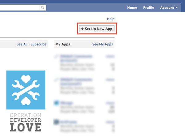 La première étape est plutôt simple, puisqu’il s’agit de la création de votre application. Pour cela, il vous suffit de vous rendre sur facebook.com/developers et de cliquer sur Set up new app (ou également Create one si vous n’en avez encore jamais créé). C’est également sur cette page que vous pouvez soumettre votre application lorsque celle-ci est terminée : cependant, puisqu’il s’agit d’une application personnelle, vous n’aurez pas à effectuer, disons, ce point n°11.