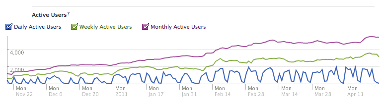Pour terminer, le dernier indicateur potentiellement pertinent dans votre cas de figure (pour ce qui est d’une éventuelle activité sur Facebook) pourrait être le nombre d’utilisateurs actifs mensuels sur votre Fan-Page, puisqu’il s’agit de personnes pour lesquelles vos publications sont visibles : cela vous permet donc d’évaluer si vous parvenez à soigner ou non le Edgerank de votre Fan-Page, et donc indirectement si vous parvenez à engager suffisamment les membres de votre communauté.
