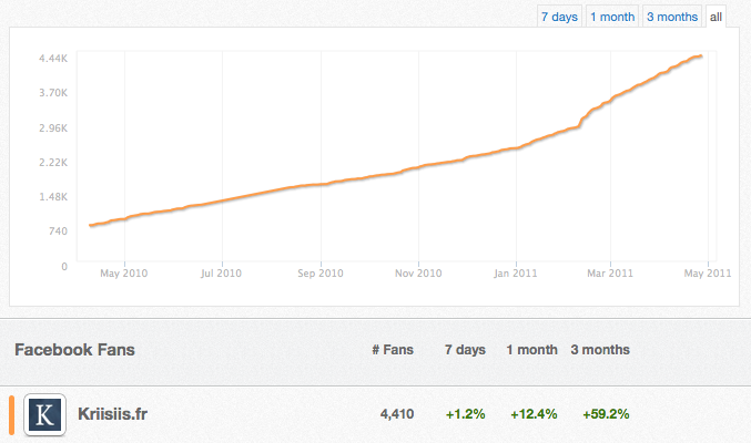 J’espère cependant que ces 12 indicateurs vous ont inspiré, qu’ils vous feront oublier les simples nombre de fans et nombres de followers, et idéalement qu’ils vous permettront de mieux analyser votre performance sur Facebook et Twitter. Si vous avez la moindre question ou la moindre suggestion à apporter au sujet de cet article, n’hésitez pas à m’en faire part dans les commentaires de cet article, ou à me retrouver sur la Fan-Page de Kriisiis.fr sur Facebook ainsi que sur Twitter, pseudo @Kriisiis.