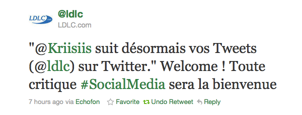 Certaines entreprises ont su comprendre bien assez tôt l’intérêt d’humaniser leur présence sur Twitter (je pense notamment à la SNCF avec @Yaelle_VSNCF et La Poste avec @LisaLaPoste). Les consommateurs attendent aujourd’hui d’une société qu’elle partage d’égal à égal avec eux (évitez la communication verticale sur les réseaux sociaux), et seront bien plus à même de lui accorder de la confiance en ayant connaissance de cette pratique. Vous n’êtes pas un robot, alors montrez-le !