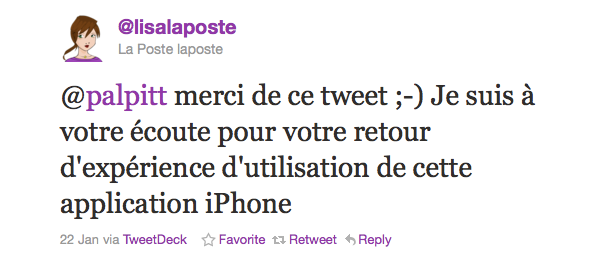 Avez-vous déjà pesté contre La Poste sur Twitter ? Si c’est le cas, alors vous remarquerez que dans les heures qui suivent, la Community Manager vous contactera systématiquement (idéalement en DM) afin de prendre en charge le problème et de vous proposer une solution. Cette démarche pro-active n’est possible que grâce à une veille efficace sur des mots-clés ciblés, alors essayez de ne pas négliger cet aspect si vous souhaitez satisfaire un maximum les consommateurs présents sur Twitter.