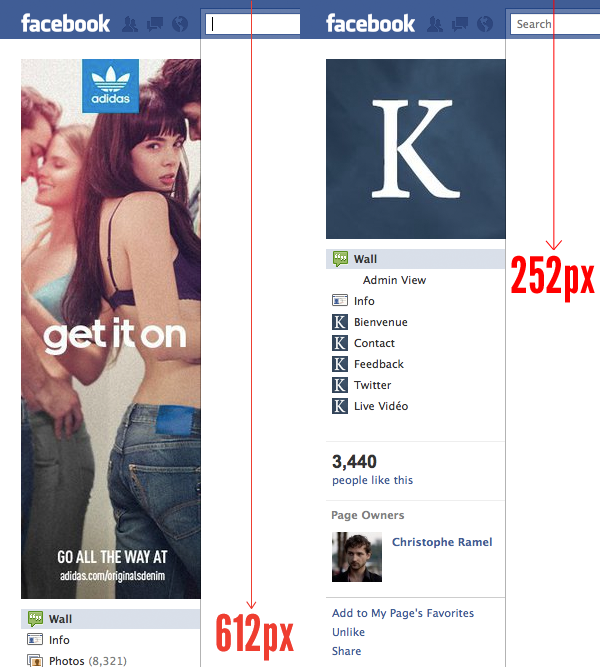 Depuis que les Fan-Pages sont majoritairement passées dans leur nouveau format, les dimensions de l’avatar (l’image de profil) n’ont plus seulement une importance au niveau de la qualité du rendu, mais également au niveau de l’emplacement des onglets. En effet, ces applications étant désormais situées sous l’avatar, une image trop importante en hauteur réduirait grandement leur visibilité. Optez donc désormais pour des images carrées, ou au moins, pas trop importantes en hauteur.