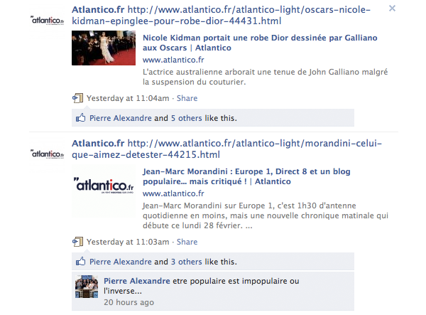 Comme je vous l’expliquais dernièrement, le degré d’engagement de vos membres est d’une importance cruciale dans le sens où il aura une conséquence directe sur le Edgerank de vos publications. En séparant deux partages de seulement quelques minutes, vous diminuez considérablement les chances pour que les internautes réagissent aux deux messages, ce qui pourrait par exemple être évité en espaçant ces publications de quelques heures ou dizaines d’heures.