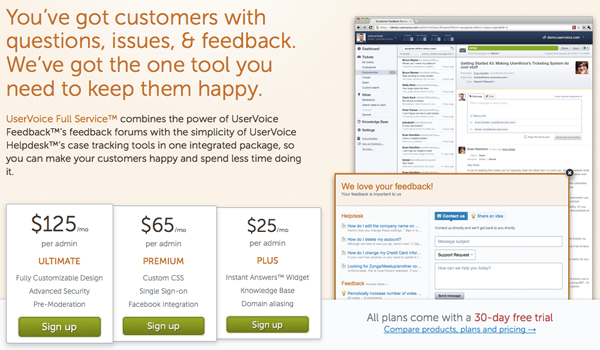 Notre partenaire du jour est de notoriété mondiale, puisqu’il est utilisé par plus de 70.000 sociétés dans 42 pays différents, dont certaines très réputées sur la toile telles que Seesmic ou encore Posterous. UserVoice est une entreprise spécialisée dans le support en ligne (support clientèle, SAV, et toutes les déclinaisons qui s’en suivent) ; il est d’ailleurs bien improbable que vous n’ayez pas déjà croisé leur widget sur un site web (vous savez, le petit bouton « feedback & support » sur l’un des coins de la page ?).