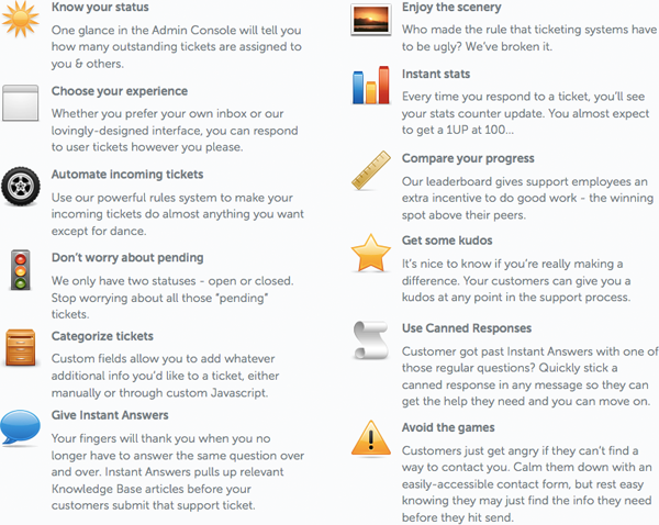 La solution Helpdesk, quant à elle, est un système de service clientèle en ligne. Il permet ainsi aux internautes de vous poser des questions, et à vous, d’adresser des réponses, que ce soit directement dans le billet ou par email. Le dashboard d’administration est très complet, et son système de gestion des billets et des administrateurs permet de gagner beaucoup de temps et de mettre en avant les membres les plus actifs et réactifs. Cet outil permet d’ailleurs de remercier les répondants avec des Kudos, genres de « +1 ».