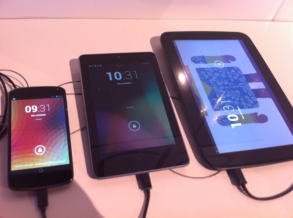 Google a marqué les esprits cette année en occupant une belle partie des espaces #LeWeb12, à ses couleurs. Outre les stands permettant de créer son propre sac Droidify, de jouer au Ping Pong avec des Macbook Pro (j’en parle un peu plus bas) ou de se faire prendre en photo muni d’accessoires dans un photomaton, la firme de Mountain View mettait plusieurs produits de sa gamme Nexus à disposition des visiteurs. Nexus 4, Nexus 7 ou Nexus 10, il y en avant pour tous les goûts !