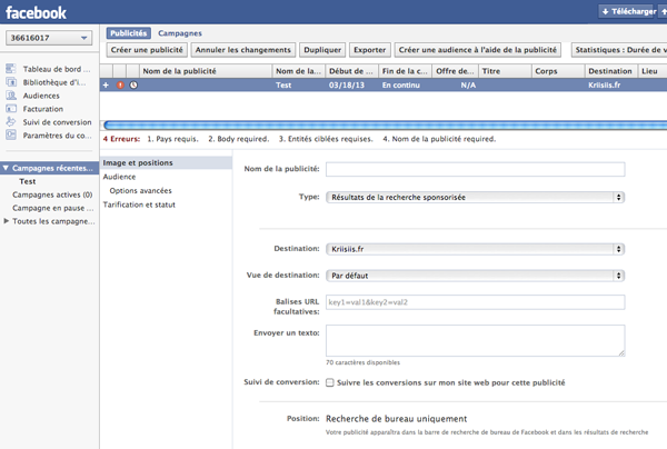 En attendant l’arrivée d’un nouveau format de publicités Facebook, avec pourquoi pas les très attendues annonces sur sites tiers (à la manière des encarts Adsense pour les budgets Adwords, mais avec des publicités en affinité avec les sujets traités et le contenu des pages ; ne serait-ce pas une évolution logique pour Facebook ?), n’hésitez pas à me retrouver sur Twitter (@Kriisis), Facebook (Kriisiis.fr) ou encore Google+ (Kriisiis.fr) si vous avez la moindre question ou suggestion.