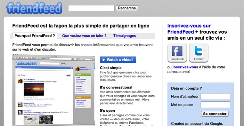 Vous en avez tous entendu parler au moins une fois. Le réseau social FriendFeed est de plus en plus connu sur le web, initialement uniquement auprès des acteurs majeurs du web, mais aujourd’hui de manière bien plus étendue. La raison de cette réussite ? FriendFeed vous permet tout simplement de regrouper les informations partagées sur Facebook ET sur Twitter, grâce à l’aspiration de membres. Il s’agit donc probablement de la future « place to be » pour tout bon internaute qui se respecte ! Vous pouvez déjà commencer par m’y retrouver sous le pseudo Kriisiis.