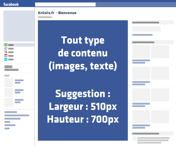 La première chose à faire est de créer le contenu qui sera retranscrit à travers l’application, à l’aide d’une iframe. Si vous ne percevez pas bien comme cela fonctionne, imaginez la chose suivante : les onglets de pages Facebook sont la plupart du temps des fenêtres qui affichent du contenu hébergé sur votre propre serveur. Ce contenu doit être de 510 pixels maximum en largeur (520px avec une petite marge par défaut), et je vous suggère d’opter pour 700 à 800 pixels en hauteur.