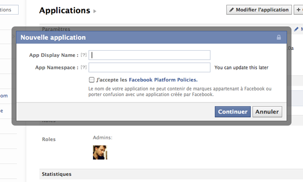 Ce billet vous expliquait étape par étape la marche à suivre afin de créer puis d’ajouter son application à sa page sur Facebook ; cependant, beaucoup d’eau a coulé sous les ponts depuis Février 2011 et le processus n’est désormais plus vraiment le même, d’autant plus que Facebook impose désormais la possession d’un certificat SSL sur son domaine. J’ai donc décidé, en vue des questions posées dernièrement dans les commentaires, de créer un nouveau tutoriel pour tous ceux qui pourraient en avoir besoin.