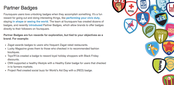 Encore une fois, Foursquare insiste sur les critères imposés pour qu’un badge soit validé. Il doit d’abord susciter de la satisfaction lors du déblocage (ne pas le nommer « Pigeon ! »…), ensuite être difficile à obtenir (un simple checkin ne suffirait pas), être assez connu pour signifier quelque chose à l’utilisateur (votre marque jouit-elle d’une notoriété suffisante ?), et enfin, doit être planifié, puisque le processus de création chez Foursquare est très long (plusieurs semaines à plusieurs mois).