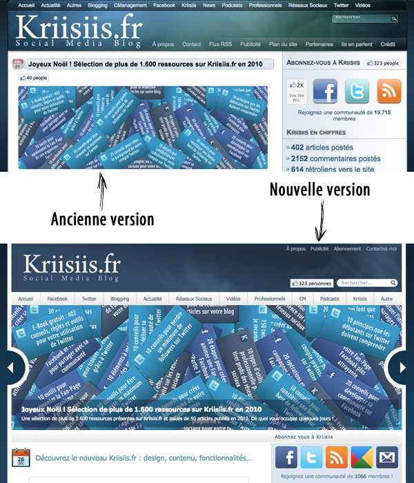 Le lancement de la nouvelle version se fait en plusieurs étapes sur Kriisiis.fr. Nous avons ainsi apporté quelques nouveautés ce jour, mais un certain nombre de nouvelles fonctionnalités devraient voir le jour sur le blog à court ou moyen-terme. Je suppose que le plus efficace pour ne rien rater est de passer me voir régulièrement sur le blog dans les prochaines semaines. ;-)