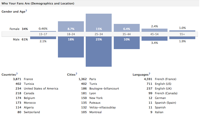 Avant toute chose, il est important de préciser que cet onglet ressemble énormément aux deux suivants, le descriptif de la portée et le descriptif « on en parle ». Facebook a volontairement rationalisé les rendus afin que vous puissiez facilement et rapidement confronter les profils de vos fans avec ceux des personnes chez lesquelles votre activité a pu être visible, ou encore, qui ont parlé de vous. Pour quelle raison ? Tout simplement pour vous permettre d’adapter votre stratégie selon vos objectifs.