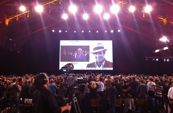 Je me suis donc rendu à la Halle Tony Garnier lundi soir, le regard braqué sur des invités de prestige (je n’ai reconnu que les plus « visibles » : Patrick Timsit, Daniel Auteuil, Lambert Wilson, Pierre Richard, François-Xavier Demaison, Jean Rochefort…), mais surtout avec l’espoir d’approcher deux immenses talents : Quentin Tarantino et Jean-Paul Belmondo. Et la chance m’a souri ! Ils étaient là, à deux mètres de mon sourire niai ! Et ce n’était que le début de mes surprises…