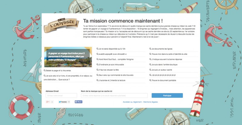 Lorsqu’il s’agit de promouvoir son activité, les marques font souvent appel à certaines méthodes « valeurs sûres », telles que l’achat de display, le placement de produits ou la relation presse, alors que d’autres saupoudrent leur plan de communication avec des grains d’originalité, tels que le marketing d’embuscade par exemple (consistant à rebondir de manière originale sur un élément contextuel, tel que la Coupe du Monde à travers une opération « Football » ou « Brésil » par exemple). Enfin, certains vont encore plus loin en déployant des dispositifs tels que L’Odyssée, une véritable chasse au trésor du web, dont le nom de l’organisateur reste un mystère.