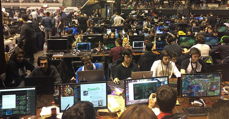 Je me suis donc rendu au Palais des Sports de Lyon ce weekend pour le #LES10, et ce que j’y ai vu m’a littéralement couplé le sifflet. D’abord, il y a cette foule de passionnés, joueurs comme spectateurs, qui s’adonnent à l’unisson à leur passion. Plusieurs compétitions ont lieu pendant le weekend, couplant des amateurs, des semi- professionnels et des professionnels, et les parties les plus populaires sont diffusées sur différents écrans dispatchés autour d’un parterre de PC, voire même sur un écran géant devant une grande tribune montée pour l’occasion. L’oreille tendue, on peut entendre les spectateurs s’extasier devant certaines combinaisons, parler tactiques et schémas de jeu, puis après les parties, débriefer des meilleurs coups réalisés.