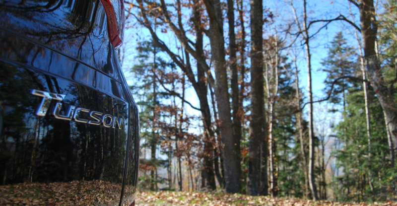 Crashtest n°4, la conduite sur des routes de campagne et en basse montagne : je ne pouvais finalement pas garder le nouveau Tucson pendant plusieurs jours et rester sur le périphérique ou en ville ! Nous avons donc pris la route ma compagne et moi, direction des territoires plus confidentiels, entre Lyon et Saint-Étienne ; l’occasion rêvée pour tester sa puissance et sa tenue de route sur des routes de campagne, et bien entendu, de profiter des magnifiques couleurs automnales des arbres grâce à son toit ouvrant. Une sensation de plaisir extraordinaire ! Avec les hautes températures de ce mois de novembre 2015, il ne manquait finalement que le barbecue, que nous aurions d’ailleurs pu embarquer sans le moindre problème lorsque l’on sait que le coffre du SUV fait 513 litres, en forte progression par rapport à celui du iX35 (465 litres).